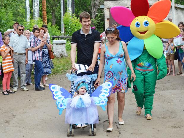 15 малышей приехали на праздник в оригинальных колясках, над которыми потрудились находчивые родители. Парад колясок стал самым ярким моментом праздника. Детские коляски больше походили на невероятные сказочные сооружения. У каждого была своя идея и название. Перед зрителями и жюри предстали медсестра, танкист, Микки Маус, Змей Горыныч, пираты, слоник, заяц Степашка, бабочки и ангелочки. Хозяйка экипажа «Синяя жемчужина» 3-месячная Даша на параде была с большой группой поддержки. Ее мама Екатерина Бушкова рассказала, что коляску украшали всей семьей и на парад пришли все вместе. В образе пиратов были 6 членов семьи и даже собака.