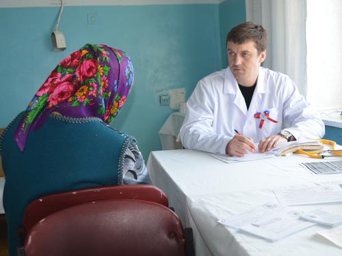 "Река жизни" в Санчурске. Ведет прием пациентов кардиохирург, заместитель главного врача Кировской областной клинической больницы М.С.Суханов.