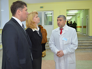 В Кировском областном онкологическом диспансере побывали первый заместитель Председателя Правительства Кировской области Дмитрий Матвеев и глава департамента здравоохранения Елена Утемова. Главный врач диспансера Курбан Эскеров показал обновленные помещения и новое оборудование.