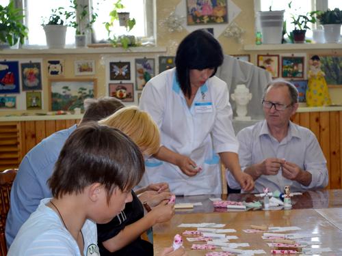 Руководитель Арт-студии С.В.Голубева проводит мастер-класс по изготовлению оберегов.