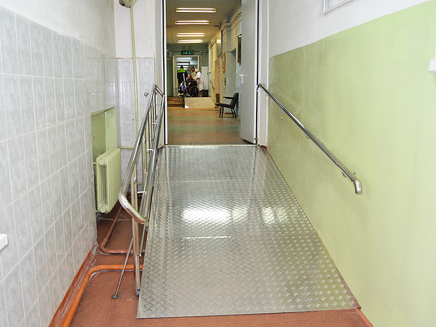 Медицинские организации Кировской области продолжают планомерную работу по созданию доступной среды для маломобильных групп населения. Большая работа в этом направлении проведена в 2016 году в Кировском областном госпитале для ветеранов войн. Там отремонтировали входную группу и установили пандус для маломобильных групп населения. На днях установили пандусы и внутри учреждения, монтируют специальные перила и поручни в местах общего пользования. Это делает пребывание маломобильных групп пациентов в госпитале более комфортным.