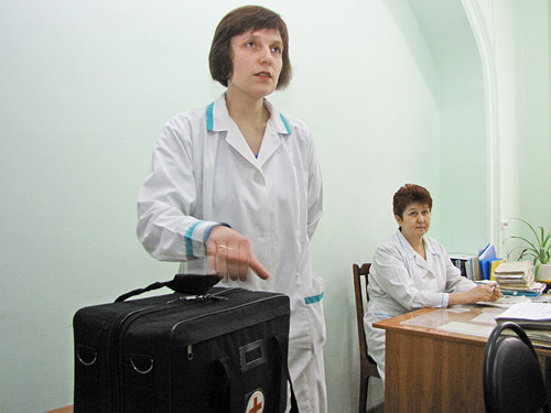 Медсестра Елена Скрябина собирается на выезд к пациентам.