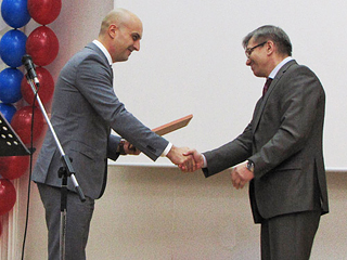 Под бурные аплодисменты Александр Бондарев вручил главному врачу учреждения подарочный сертификат на сумму 1 млн. 700 тыс. рублей на покупку медицинского оборудования.