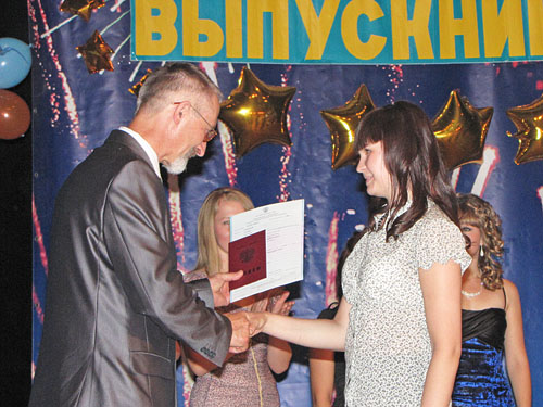 Директор колледжа В.В.Шубин вручает дипломы отличникам.
