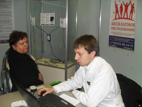 Руководитель Центра здоровья СГКБ Д.С.Ощепков проводит обследование на кардиовизоре.