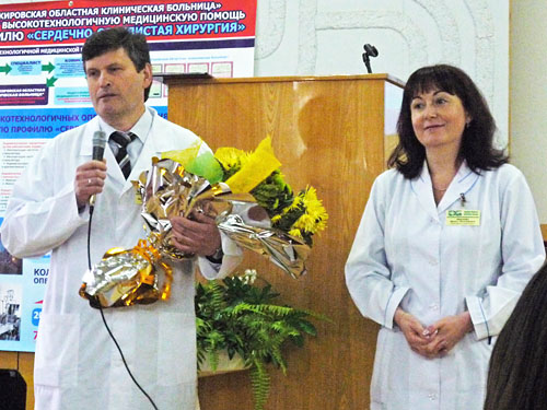 Поздравление от администрации областной больницы: заместители главного врача М.А.Мотовилов и И.Л.Иванова.