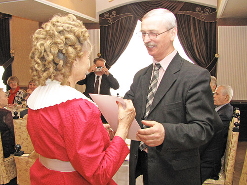 Главный врач Кировской городской больницы №4 С.В.Картошкин вручает ветеранам почетные грамоты.