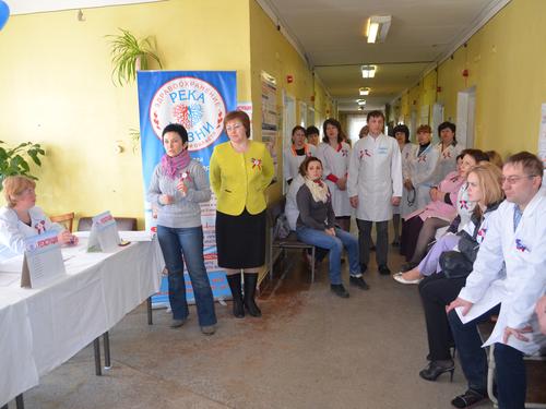 "Река жизни" в Санчурске. Заместитель главы департамента здравоохранения А.В.Пересторонина дает последние наставления перед началом акции.