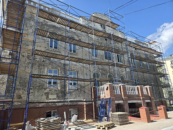 В Центре медицинской реабилитации идет масштабный ремонт фасада исторического здания поликлиники