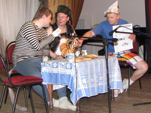 Врач анестезиолог-реаниматолог Северной городской клинической больницы И.Серков (справа) и его группа поддержки в качестве героев из Простоквашино.