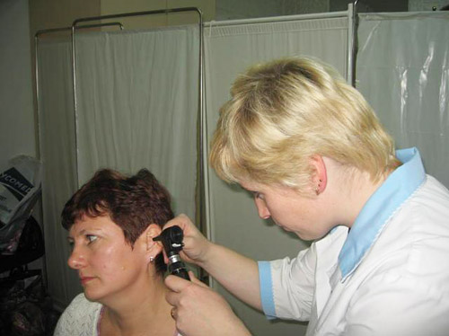 Врач Космачева Елена Аркадьевна (Слободская ЦГБ). Проведение отоскопии.