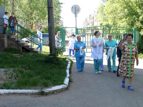 Эвакуация сотрудников и пациентов Кировской городской больницы №4.