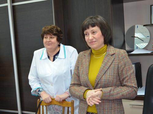 Главный врач Лузской ЦРБ И.Семушина, начальник отдела по организации медицинской, фармацевтической и высокотехнологичной помощи департамента здравоохранения Кировской области И.Ходырева.