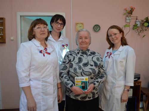 "Река жизни" в Санчурске. Специалисты Центра медицинской профилактики с победителем розыгрыша на школе здоровья.