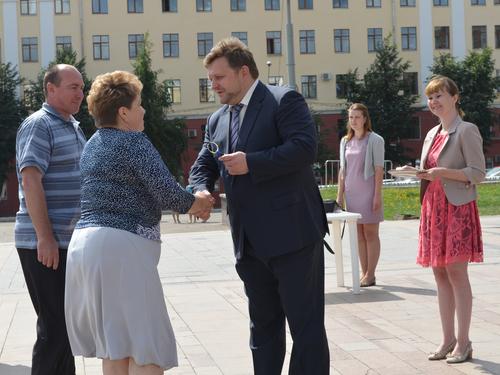 Врио Губернатора Кировской области Н.Ю.Белых вручает ключи от автомобиля Ford главному врачу Уржумской ЦРБ И.Н.Кощеевой.