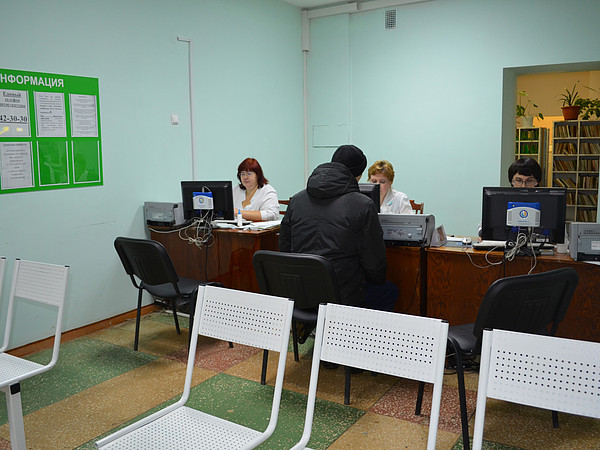 Регистратура "нового образца" в поликлинике №7 Кировского клинико-диагностического центра.