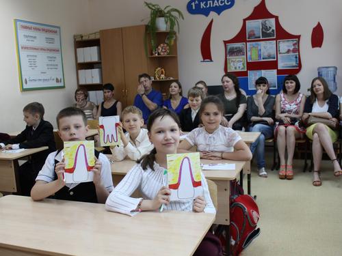 На уроке гигиены полости рта в третьем классе в Гимназии им. А.Грина.