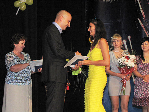Заместитель главы департамента здравоохранения А.М.Бондарев вручает дипломы фельдшерам.